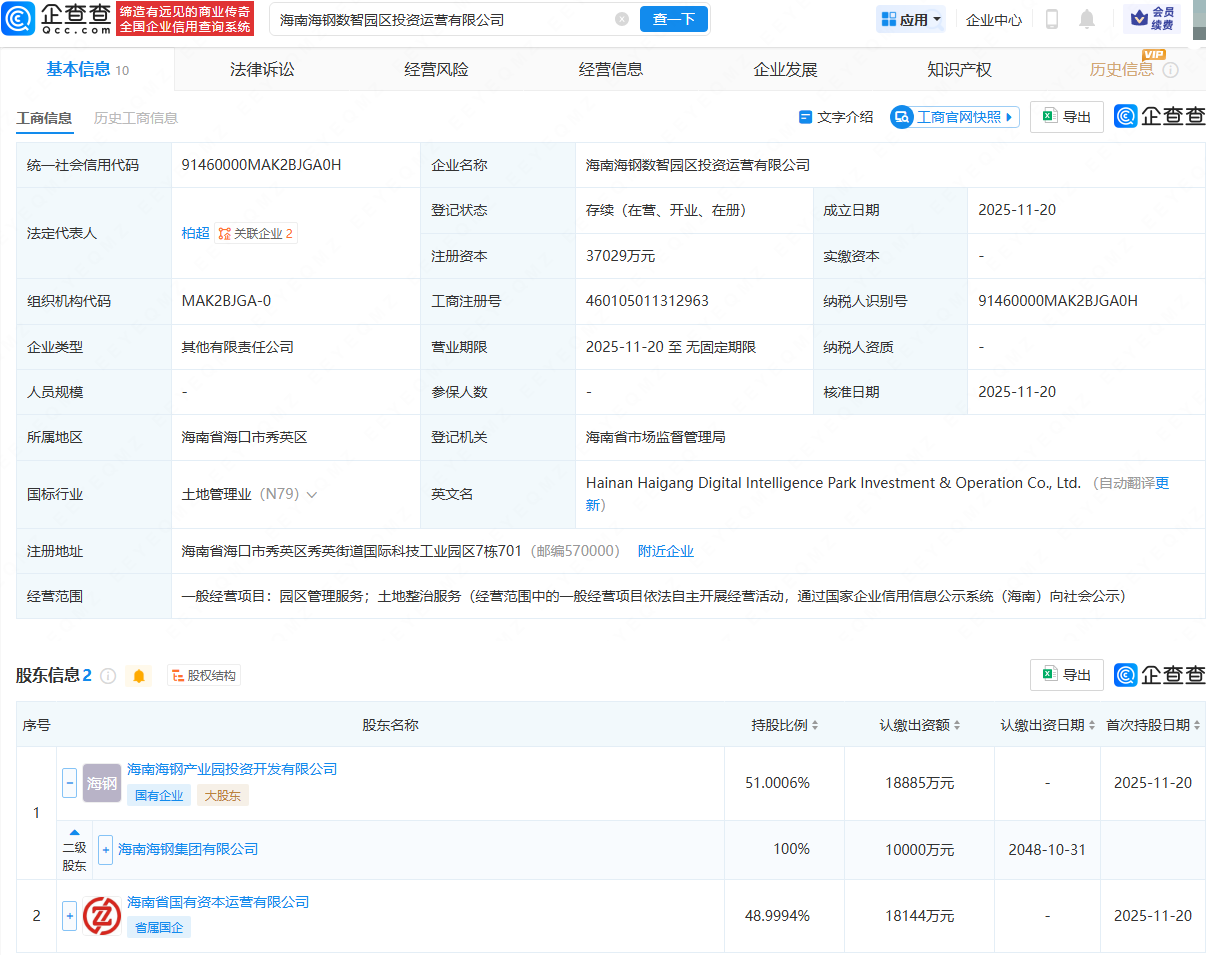 近日可靠股票配资公司,海南海钢数智园区投资运营有限公司成立,法定代表人为柏超,注册资本约为3.7亿元,经营范围包含:园区管理服务;土地整治服务。企查查股权穿透显示,该公司由海南海钢集团有限公司旗下海南海钢产业园投资开发有限公司、海南省国有资本运营有限公司共同持股。
